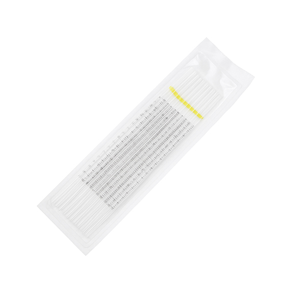 Ahorras tiempo en tu trabajo diario porque las pipetas están codificadas por colores según las normas ISO vigentes, lo que te permite encontrar rápidamente el tamaño correcto. Las graduaciones claras garantizan una alta precisión, y las escalas ascendente y descendente facilitan la lectura tanto del volumen dispensado como del volumen restante. Las pipetas son estériles y se envasan en paquetes de 25 unidades.